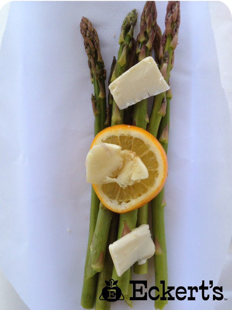 In celebration of homegrown asparagus season which is just around the corner, I made Oven-Roasted Asparagus Bundles with lemon, butter and herbs. This recipe is fun way to experiment with a variety of fresh herbs. I tucked a different herb sprig into each asparagus pouch before baking. The fun part of this recipe is comparing and contrasting the ways different herbs contribute to the baked asparagus.