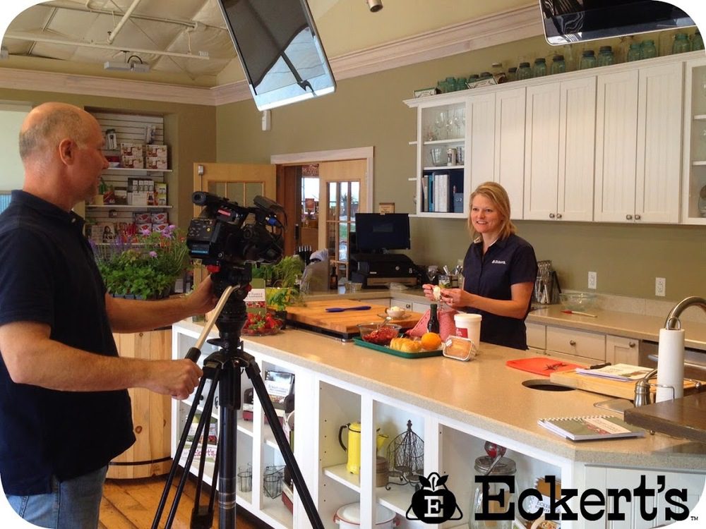 Thank you Show-Me St. Louis and camera-coach Jim Viehman for a fun afternoon in Eckert’s Cooking Classroom! It was my pleasure to prepare two recipes for Show Me which will air on Friday, April 18th. A big thank you to Eckert’s culinary stage crew, Lana Shepek and our Dietetic Intern, Rachel, from Southeast Missouri State for helping me set up my culinary “stage” for the filming.