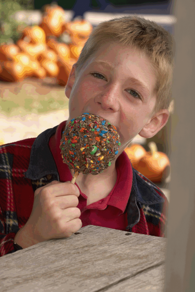 One unique thing about Eckert’s caramel apples is that we have several different types of toppings that we can add to the mix. We have choices like crushed M&M’s, Reese’s Pieces, Peanuts, Pecans or Heath Bars. These toppings are sure to satisfy even the biggest sweet tooth! For those of you what enjoy a more traditional approach, we also provide the original caramel apples, where the apples have simply been dipped into caramel. With these options we are sure to have a caramel apple for everyone in the family! Caramel apples are only available during the Fall season here at Eckert’s and are a staple of autumn everywhere. There is nothing better than the first sweet-tart bite into a fresh hand-dipped caramel apple!